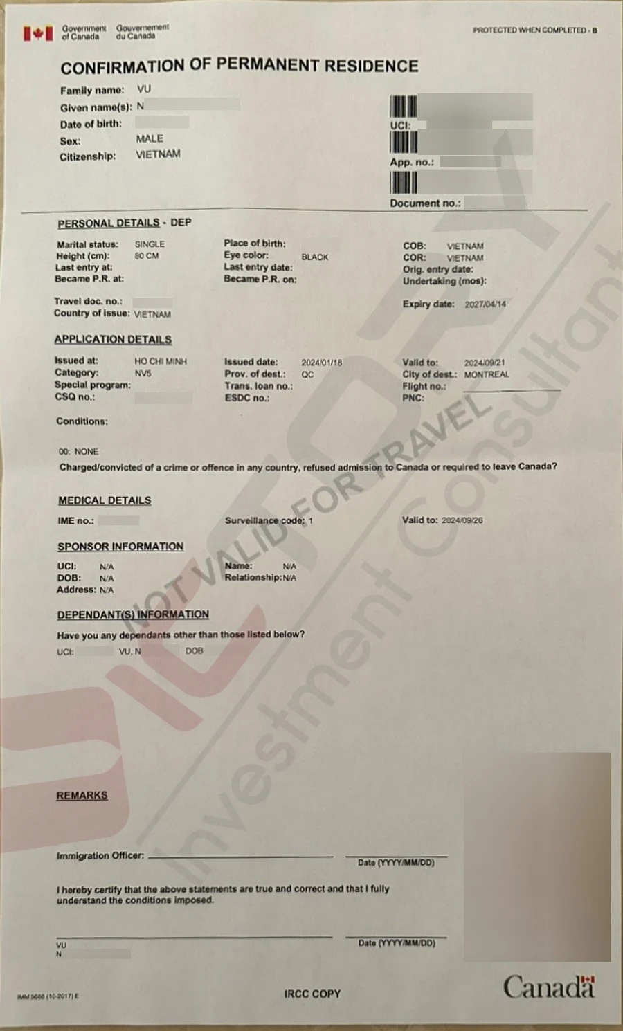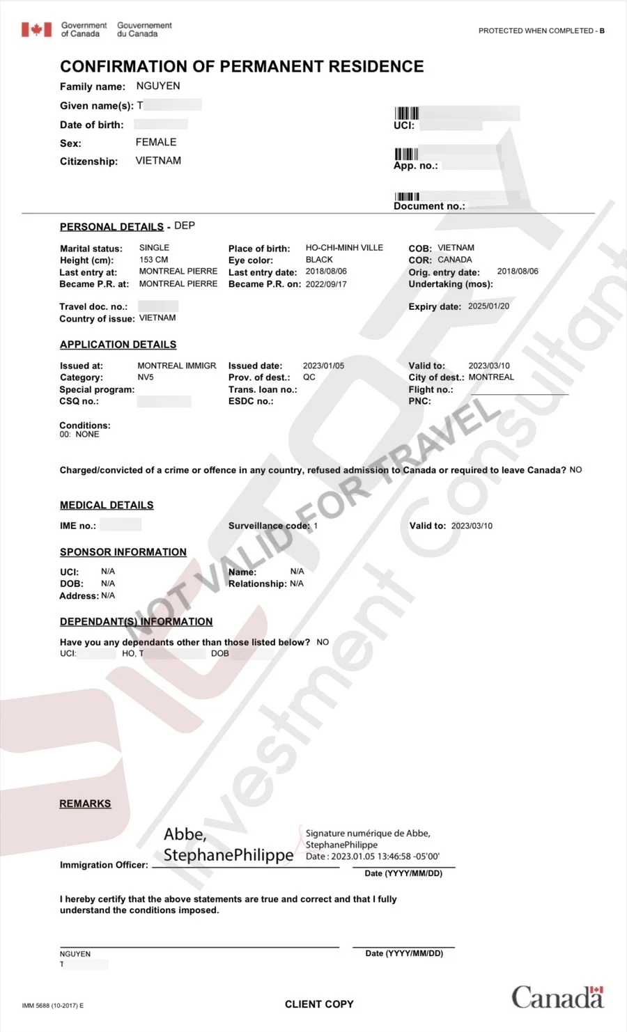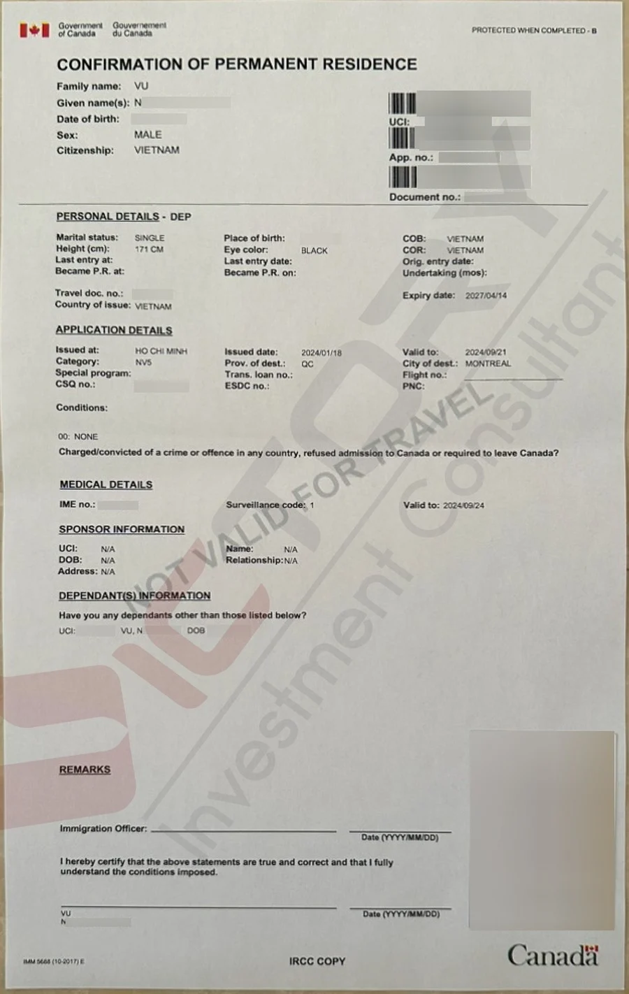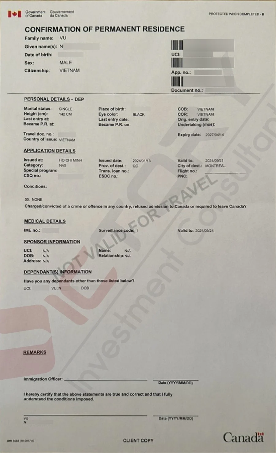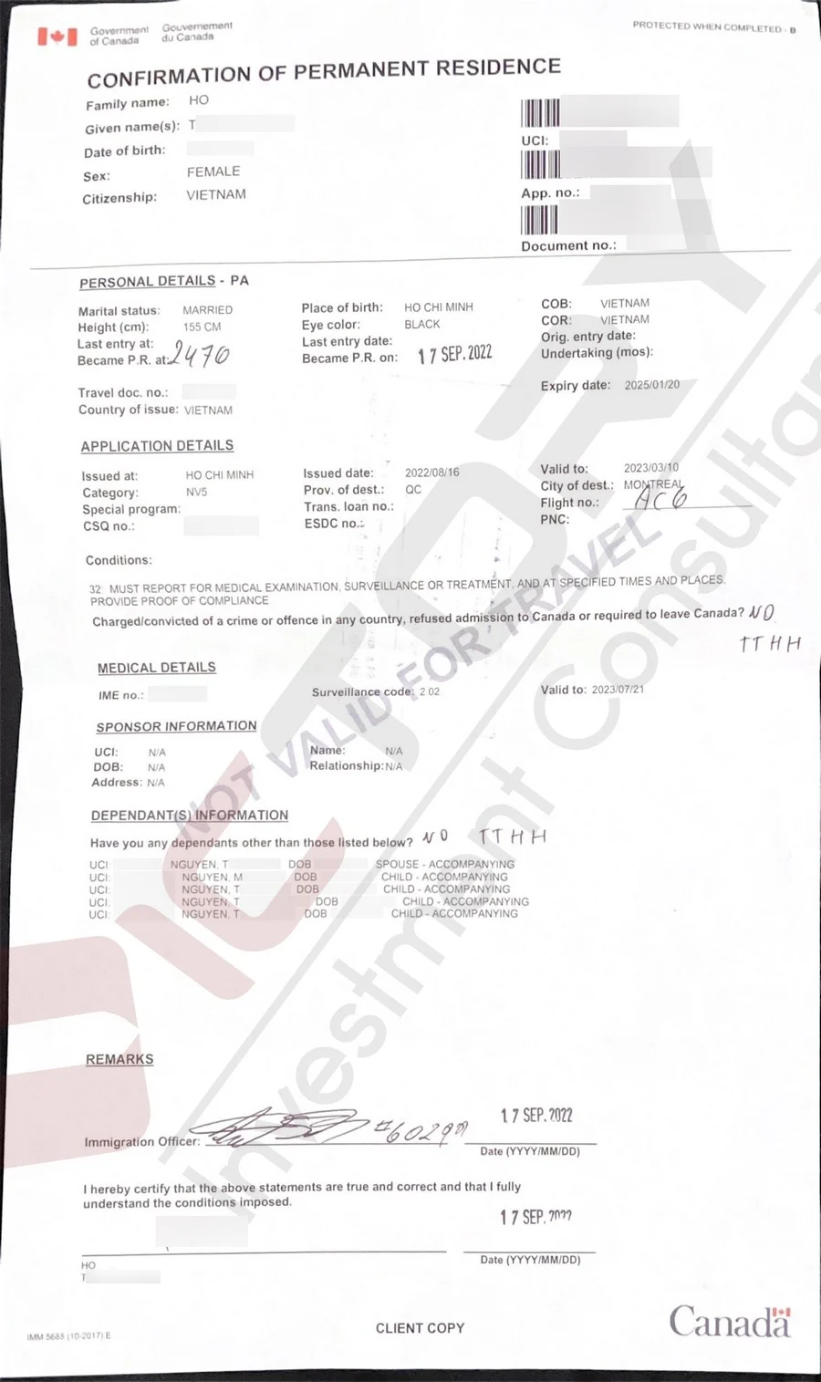 Sau khi đáp ứng tất cả các yêu cầu và hồ sơ của bạn được IRCC chấp thuận, bạn sẽ nhận được COPR, xác nhận tình trạng thường trú nhân và cho phép bạn nhập cảnh Canada để bắt đầu cuộc sống mới.