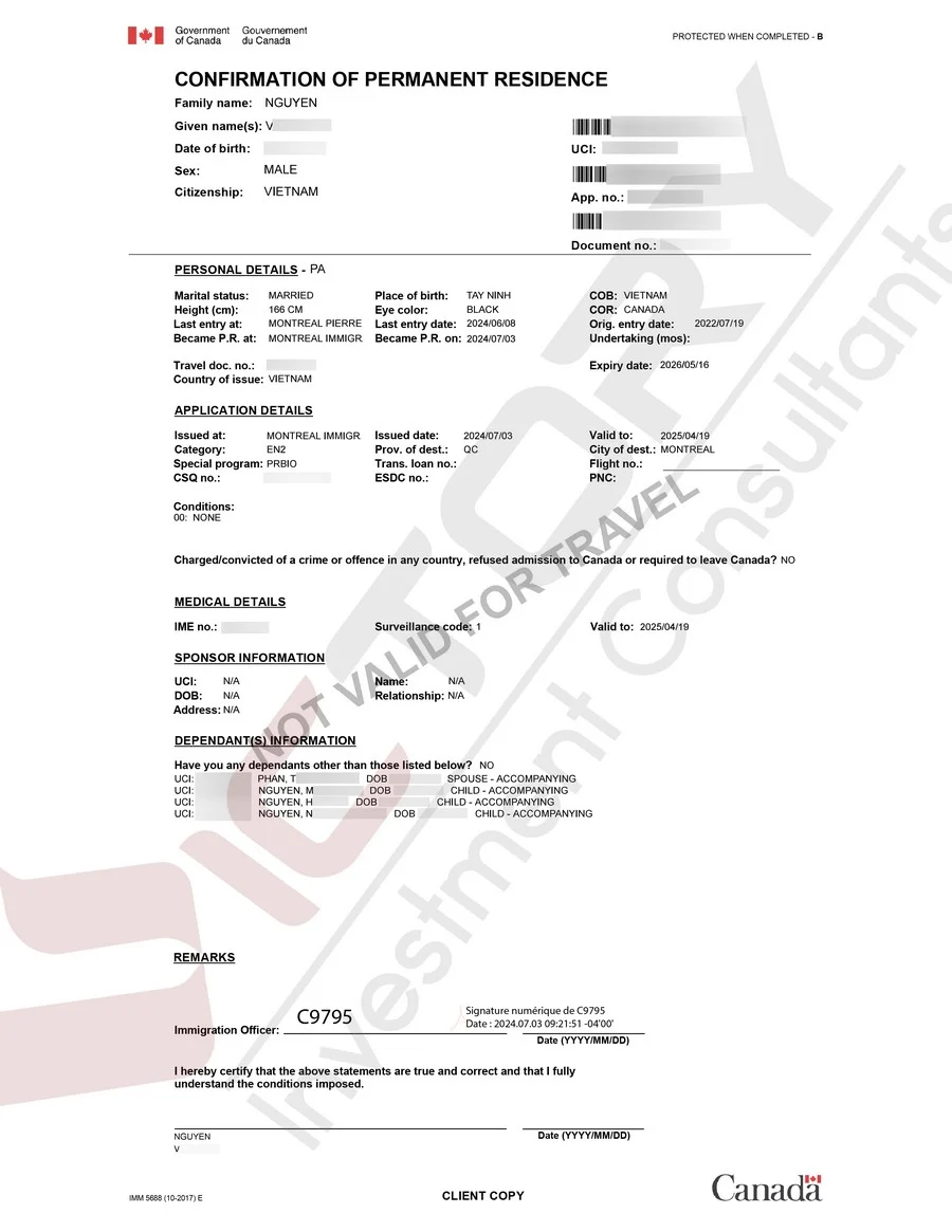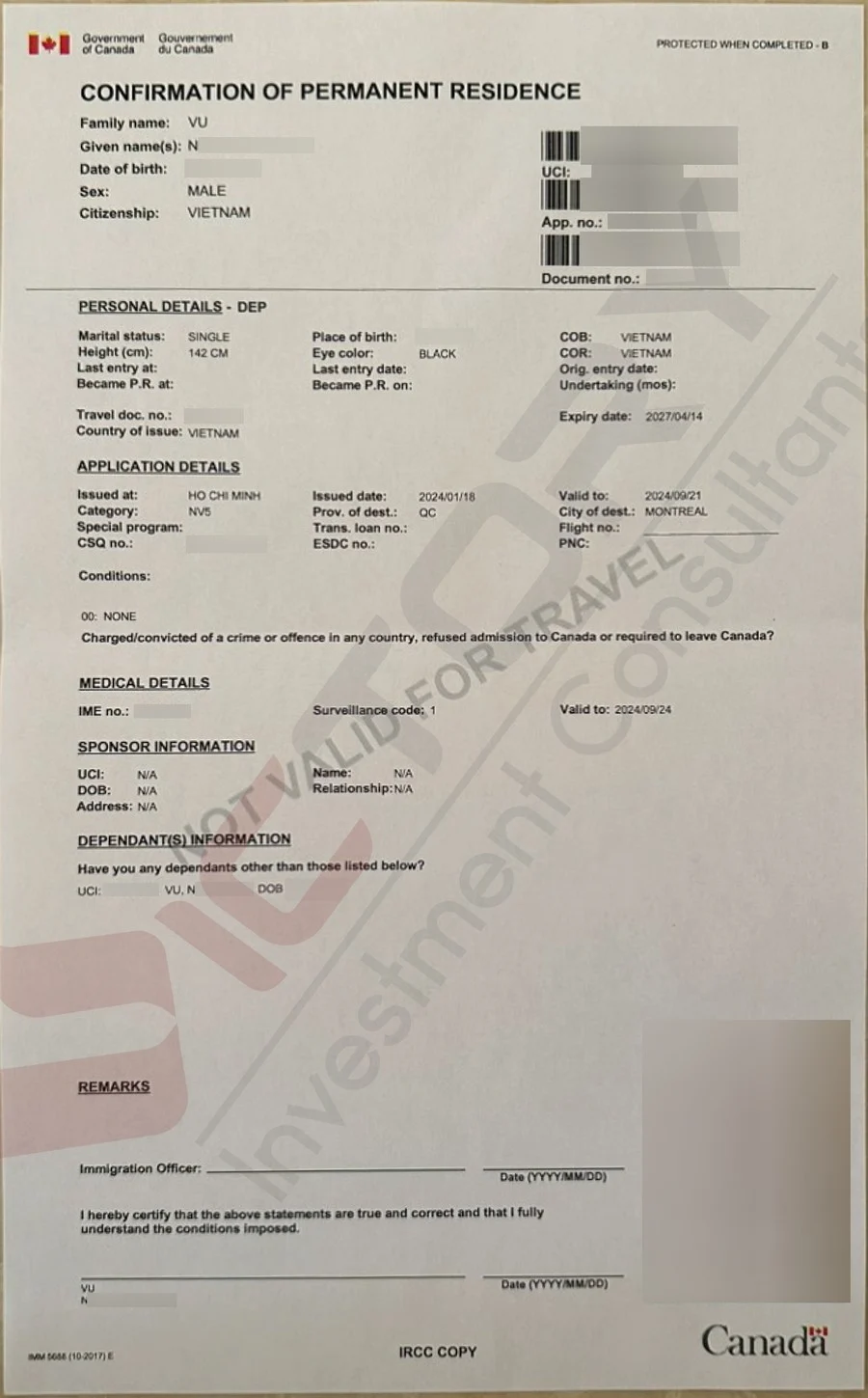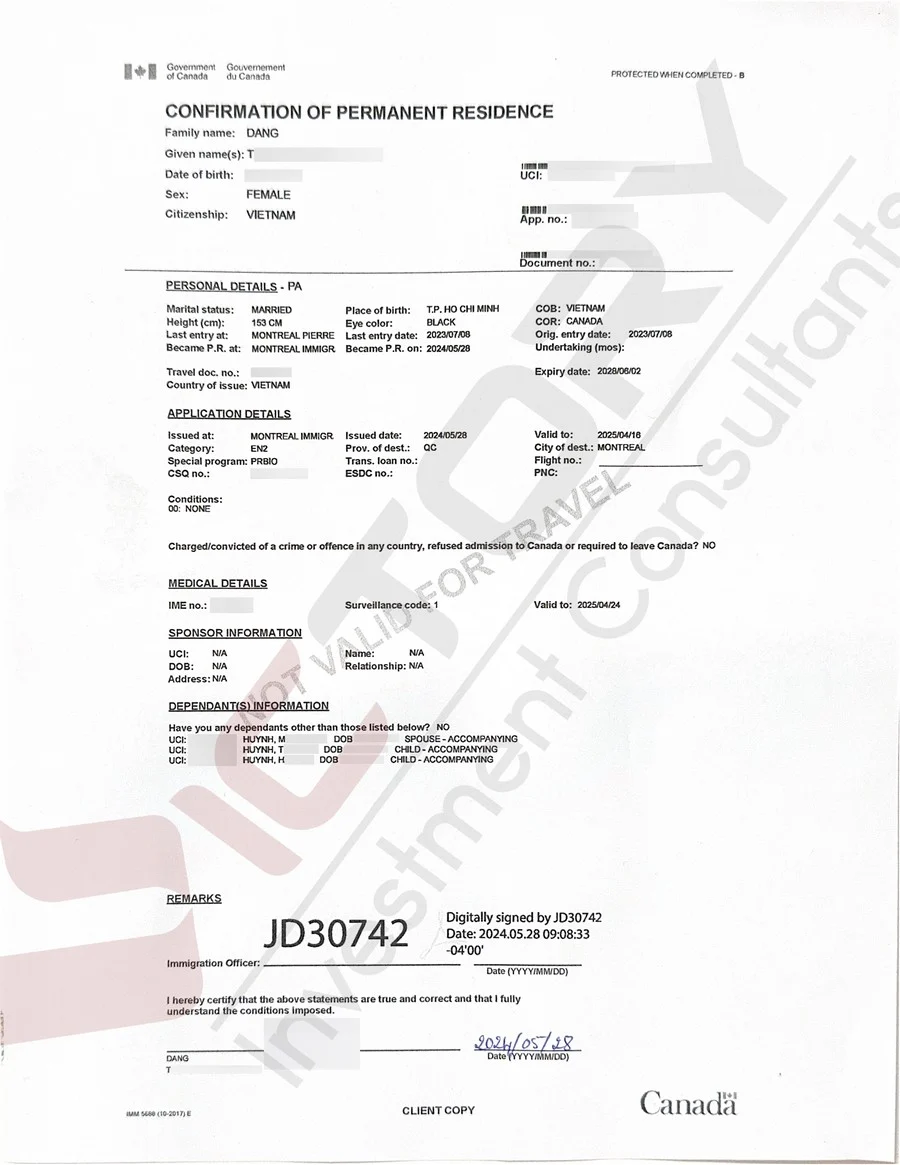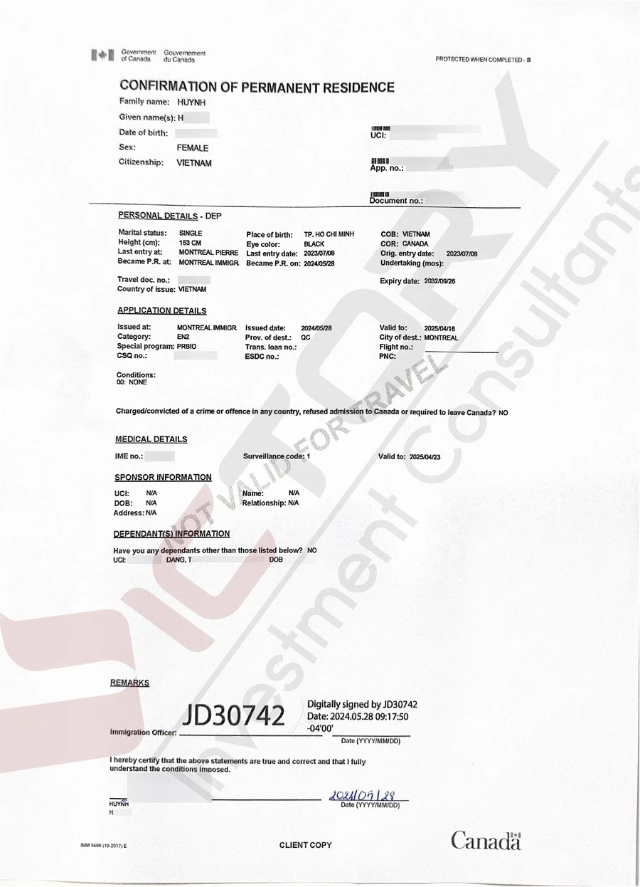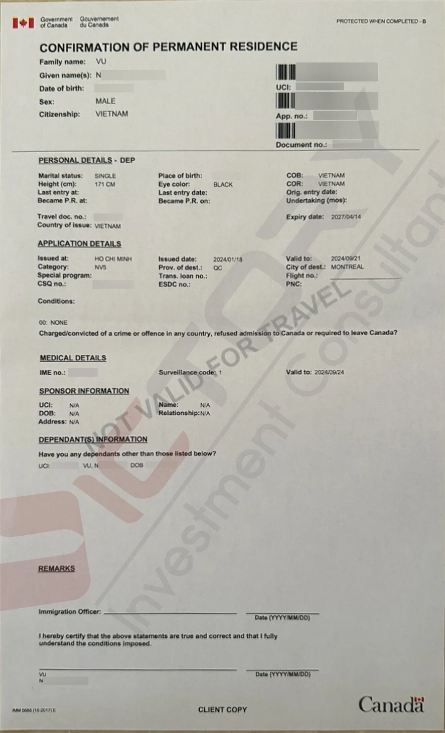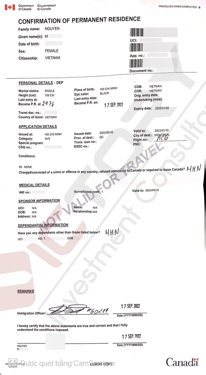 Sau khi đáp ứng tất cả các yêu cầu và hồ sơ của bạn được IRCC chấp thuận, bạn sẽ nhận được COPR, xác nhận tình trạng thường trú nhân và cho phép bạn nhập cảnh Canada để bắt đầu cuộc sống mới.