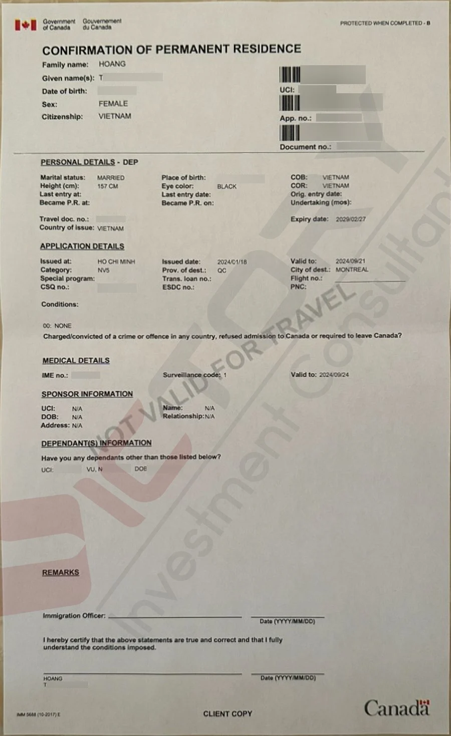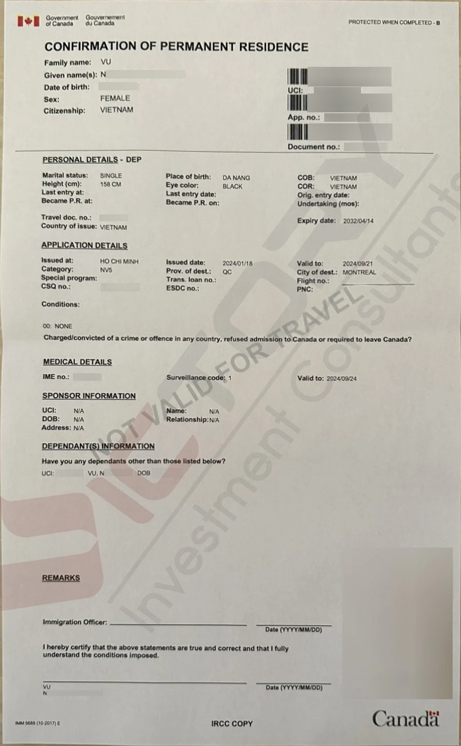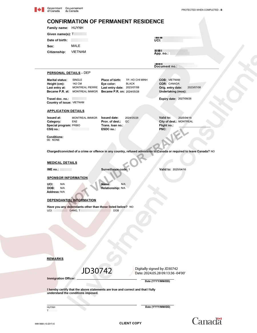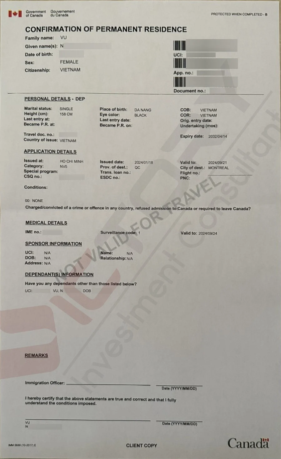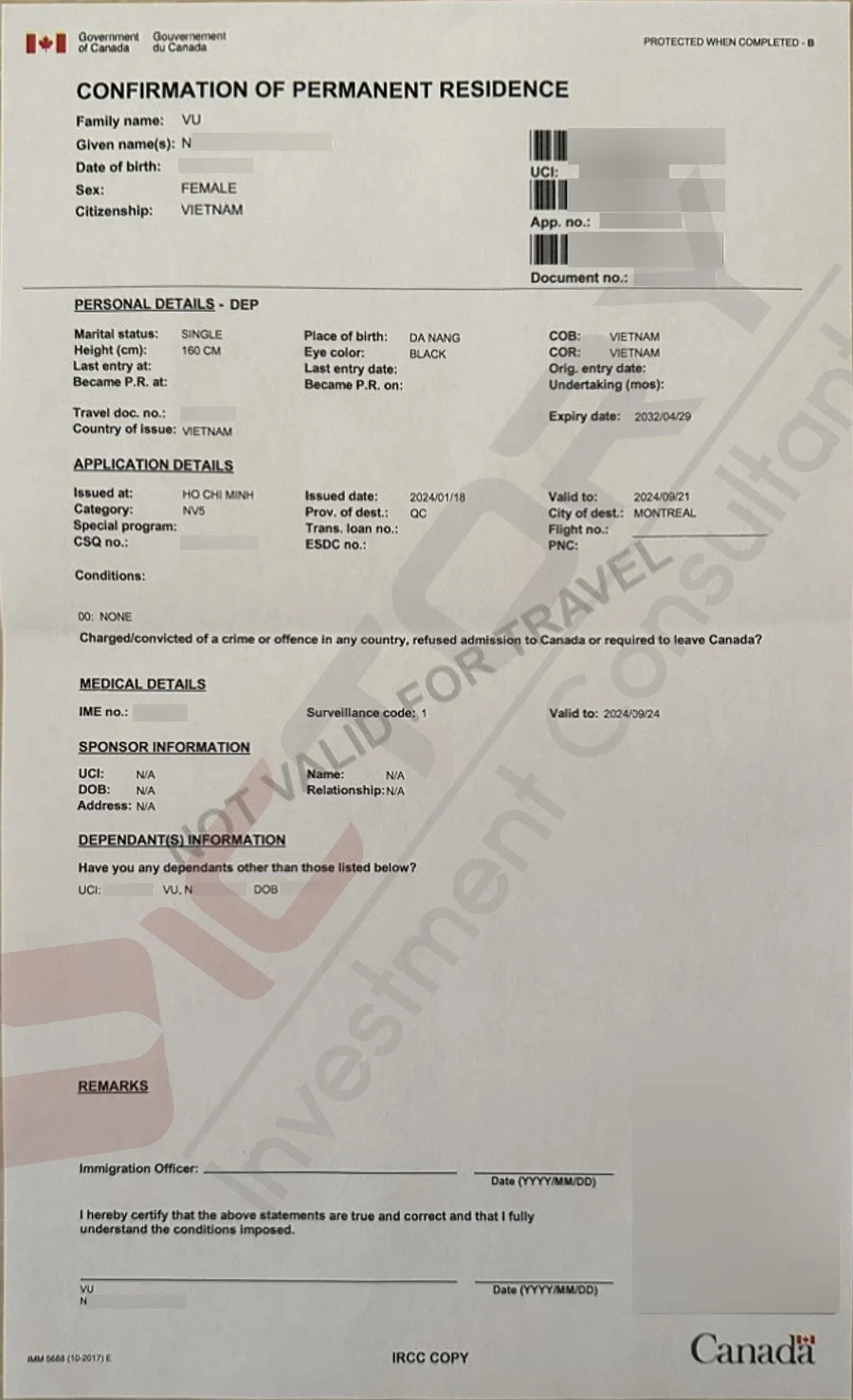 Sau khi đáp ứng tất cả các yêu cầu và hồ sơ của bạn được IRCC chấp thuận, bạn sẽ nhận được COPR, xác nhận tình trạng thường trú nhân và cho phép bạn nhập cảnh Canada để bắt đầu cuộc sống mới.