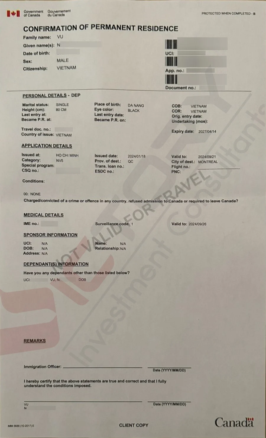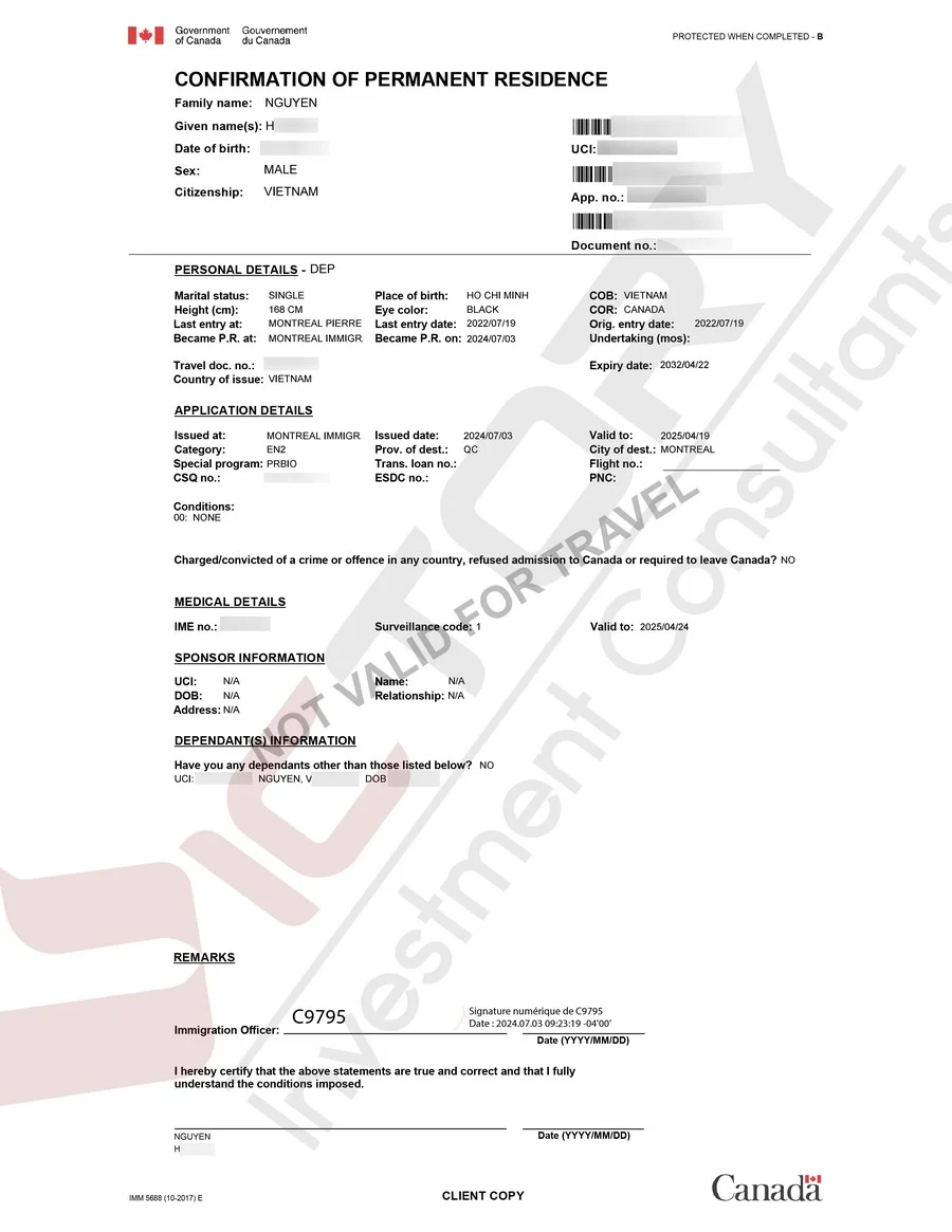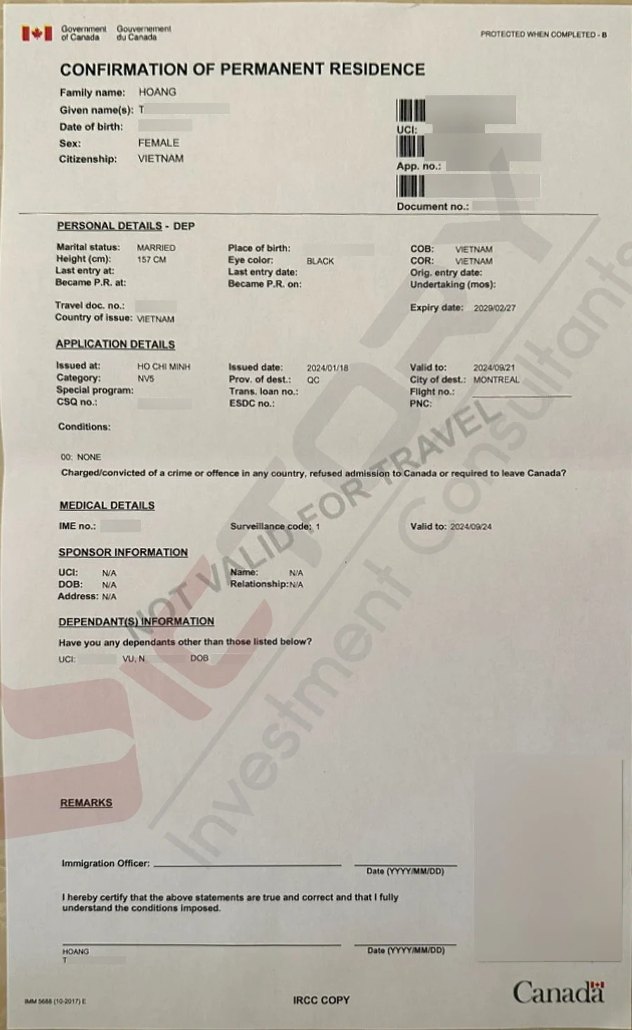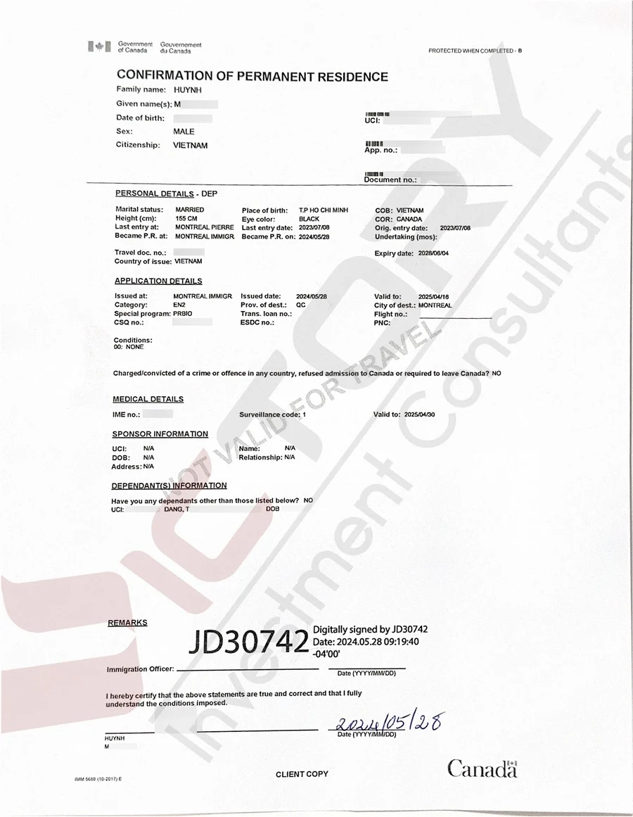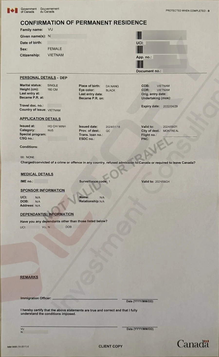 Sau khi đáp ứng tất cả các yêu cầu và hồ sơ của bạn được IRCC chấp thuận, bạn sẽ nhận được COPR, xác nhận tình trạng thường trú nhân và cho phép bạn nhập cảnh Canada để bắt đầu cuộc sống mới.