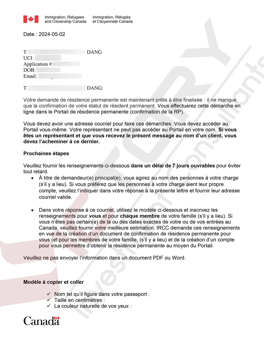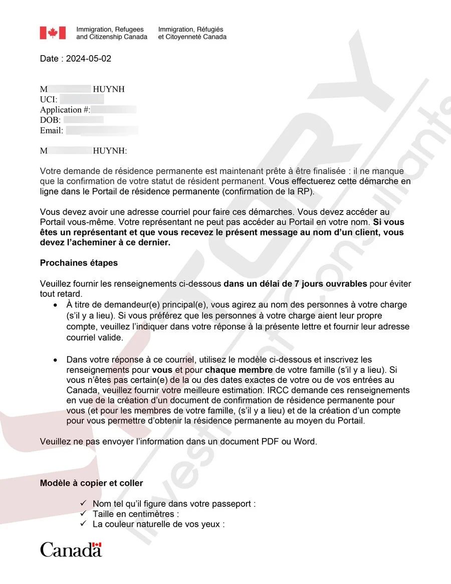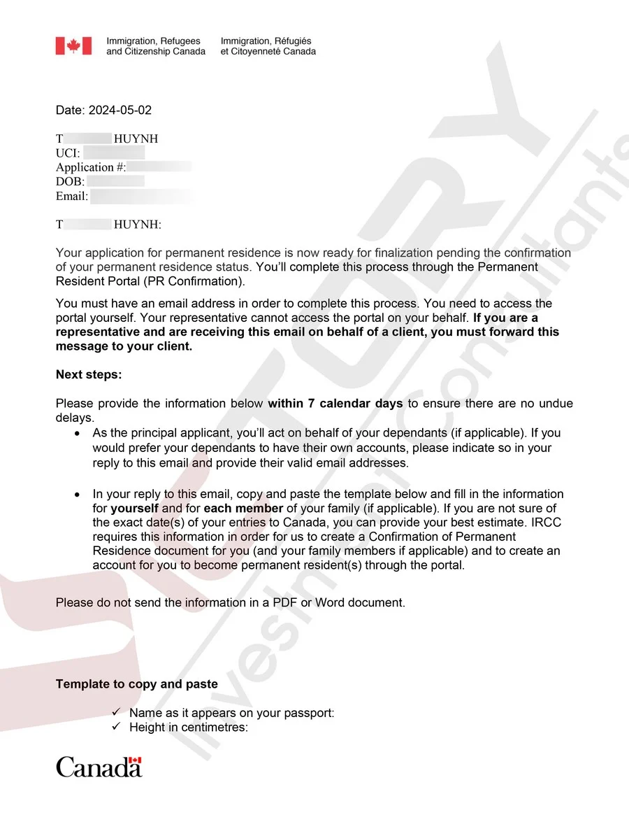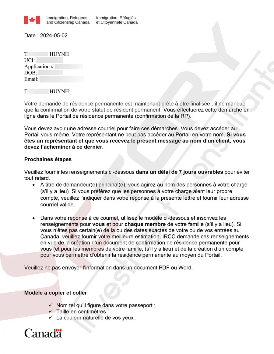 1. Nhận thư chấp thuận thường trú từ IRCC