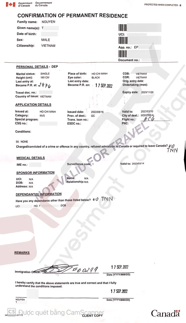 - Bạn cần mang theo COPR và hộ chiếu khi nhập cảnh Canada để hoàn tất quá trình thường trú.