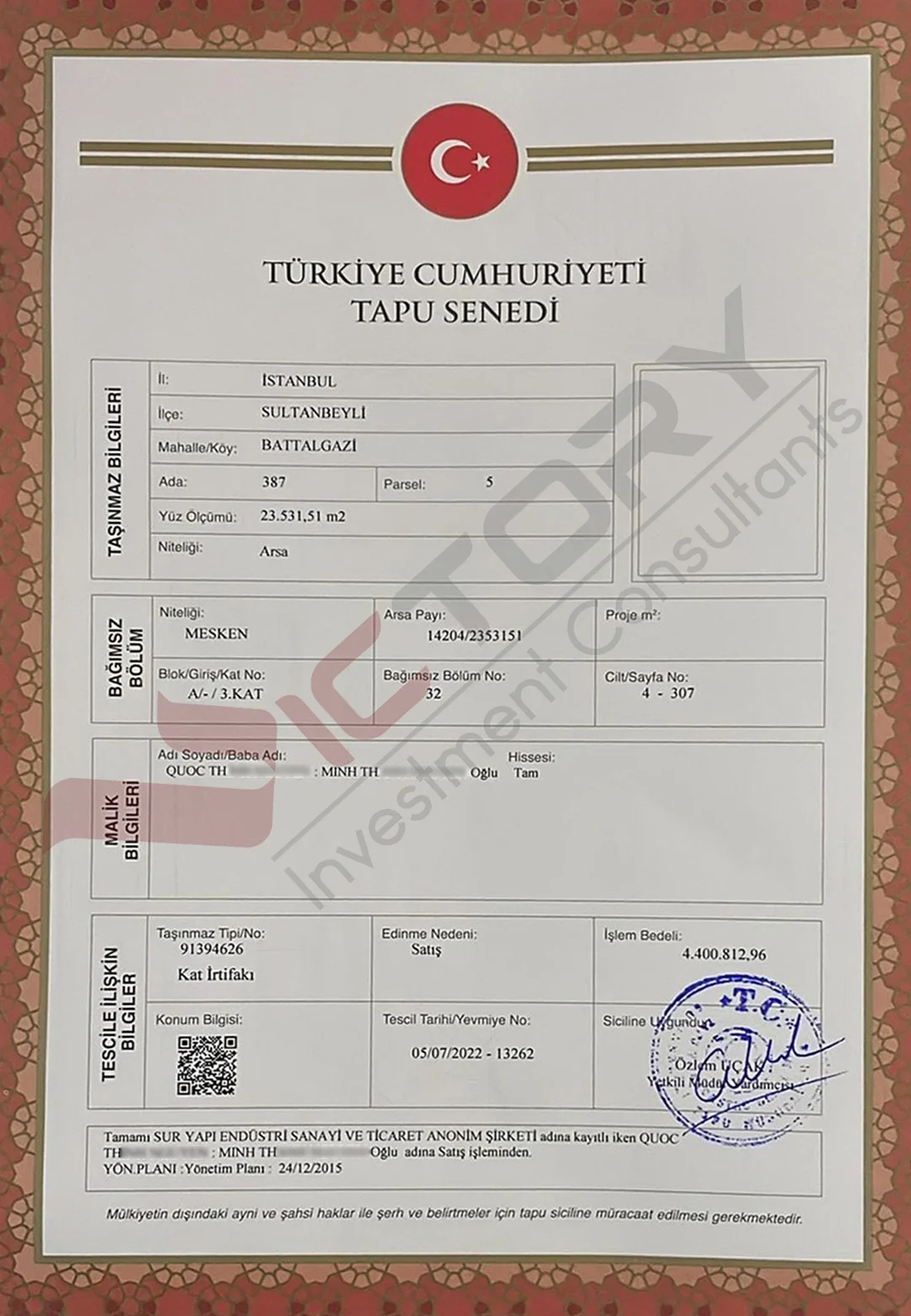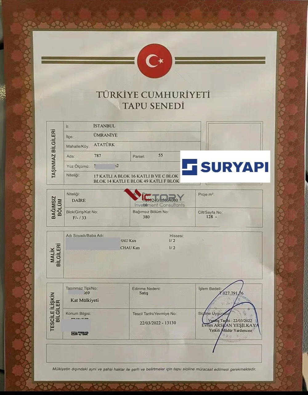 Tôi rất hài lòng với sự hỗ trợ của Victory trong quá trình tìm mua và hoàn tất thủ tục sở hữu bất động sản tại Thổ Nhĩ Kỳ. Đội ngũ tư vấn đã giúp tôi tìm được một căn hộ rất phù hợp với nhu cầu và ngân sách của gia đình. Các thủ tục pháp lý diễn ra rất suôn sẻ và nhanh chóng.